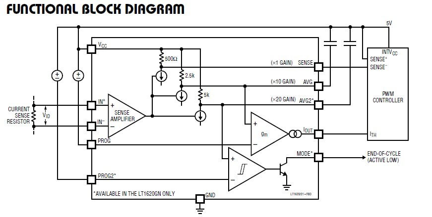 The LT1620CS8 simplifies the design of high performance, controlled current battery charging circuits when used in conjunction with a current mode PWM controller IC. The LT1620CS8 regulates average output current independent of input and output voltage variations. Output current can be easily adjusted via a programming voltage applied to the LT1620’s PROG pin.